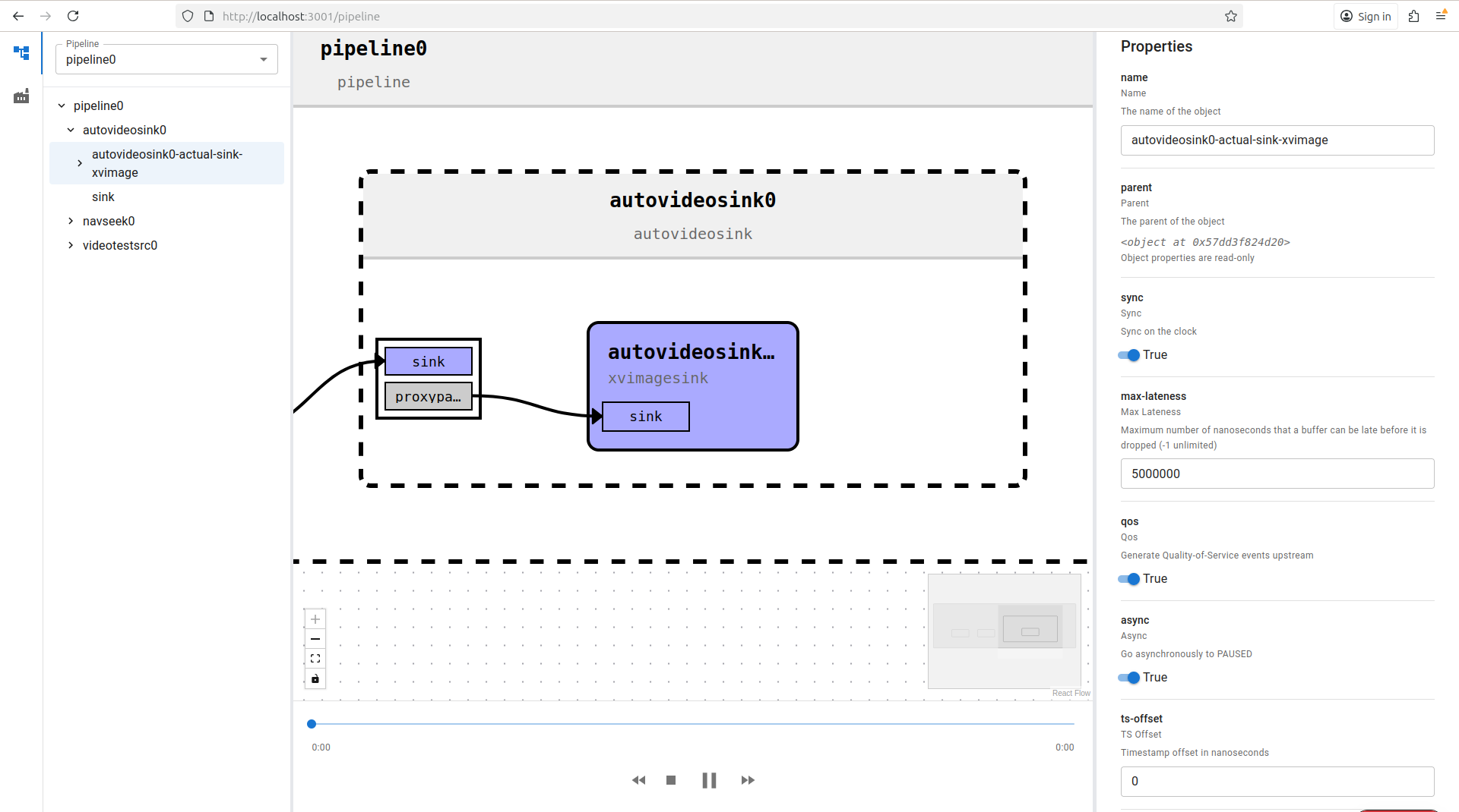 This is the main front-end. It is currently a client-only React application, but it will soon become a client and server application. The purpose of this application is to interact with the pipeline graph visualization, control the timeline and states, change the debugging logs, and modify element properties, etc. I think there are plenty of potential use cases you can come up with, and we’ll be happy to implement them. Take a look at Gst-Audit, give it a try, and send us your feedback!